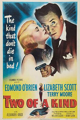 简介: Brandy Kirby和邪恶的律师Vincent Mailer想通过伪造一个William和Maida McIntyre夫妇失散多年的儿子,来捞取好处。B Brandy Kirby和邪恶的律师Vincent Mailer想通过伪造一个William和Maida McIntyre夫妇失散多年的儿子,来捞取好处。Brandy于是诱骗赌徒Lefty Farrell假扮这个儿子。McIntyre的侄女,喜欢Lefty,将他介绍了McIntyre夫妇,老夫妇很快相信了这就是Lefty他们的儿子,但老人却不肯修改遗嘱。Lefty不敢杀害McIntyre,而说穿了Mailer的骗局。(文:life_is_good@YDY) Brandy Kirby and crooked Lawyer Vincent Mailer plan to rob William and Maida McIntyre by producing a convincing double for their long-lost son. Brandy charms gambler Lefty Farrell into impersonating the missing son. Kathy, the McIntyre's niece, who likes Lefty, introduces him to the McIntyres who soon become convinced he is their son, but the old man refuses to change his will. Lefty balks at killing McIntyre and exposes Mailer's attempted swindle. Brandy and Lefty end up together as "two of a kind."…详情
