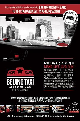 简介: 北京出租官方网站:http://www.beijingtaxithefilm.com 《北京出租车》是导演王淼的第一部长片纪录电影。王淼毕业于美国芝加哥大 北京出租官方网站:http://www.beijingtaxithefilm.com 《北京出租车》是导演王淼的第一部长片纪录电影。王淼毕业于美国芝加哥大学本科经济学位,后定居纽约,曾从事摄影、设计等工作,出于对电影的热爱,她考取了美国Parsons艺术学院电影及设计研究生学位,2007年,拍摄了自己的第一部纪录短片《Yellow Ox Mountain》,这部纪录片在全世界20多个电影节上播放过,并曾在Dallas的亚洲电影节上获得了最佳短篇纪录片奖。王淼还曾为《国家地理杂志》频道剪辑节目,为建筑设计师Steven Holl做过两个纪录片。她还在Maysles中当助手。(MAYSLES因为聚集了大批的有名纪录片导演而出名,被称为“纪录片导演的传奇殿堂”) 影片讲述三个出租车司机在奥运会前的北京两年间的点滴生活片段,以他们的视角去反映出北京为了举办奥运会所发生的一些方方面面的变化。在奥运会期间,出租车司机是北京的窗口,他们离中国的心脏最近,他们一天14个小时都在听广播和谈话节目,这些出租车司机可以谈天说地,无所不知、无所不晓;通过出租车司机这一个社会小层面,真实反映了北京很多独特而与众不同的气息;从某种角度来讲,出租车司机们是一个城市最好的见证。 《北京出租车》曾入选去年的圣丹斯电影节,并获邀在今年3月份于美国德克萨斯州举办的SXSW艺术节进行展映。 转载自“时光网”…详情